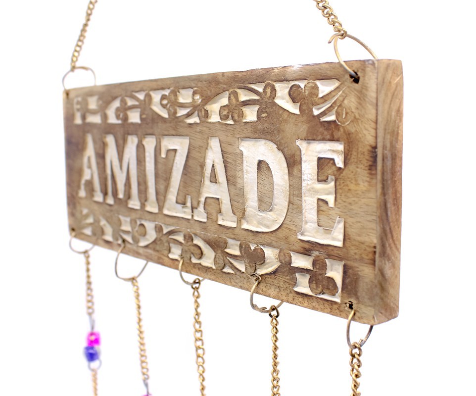 / Placa Madeira Amizade 10x25cm