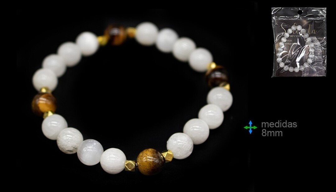 / Pulseira Pedra Selenite/Olho tigre 6mm