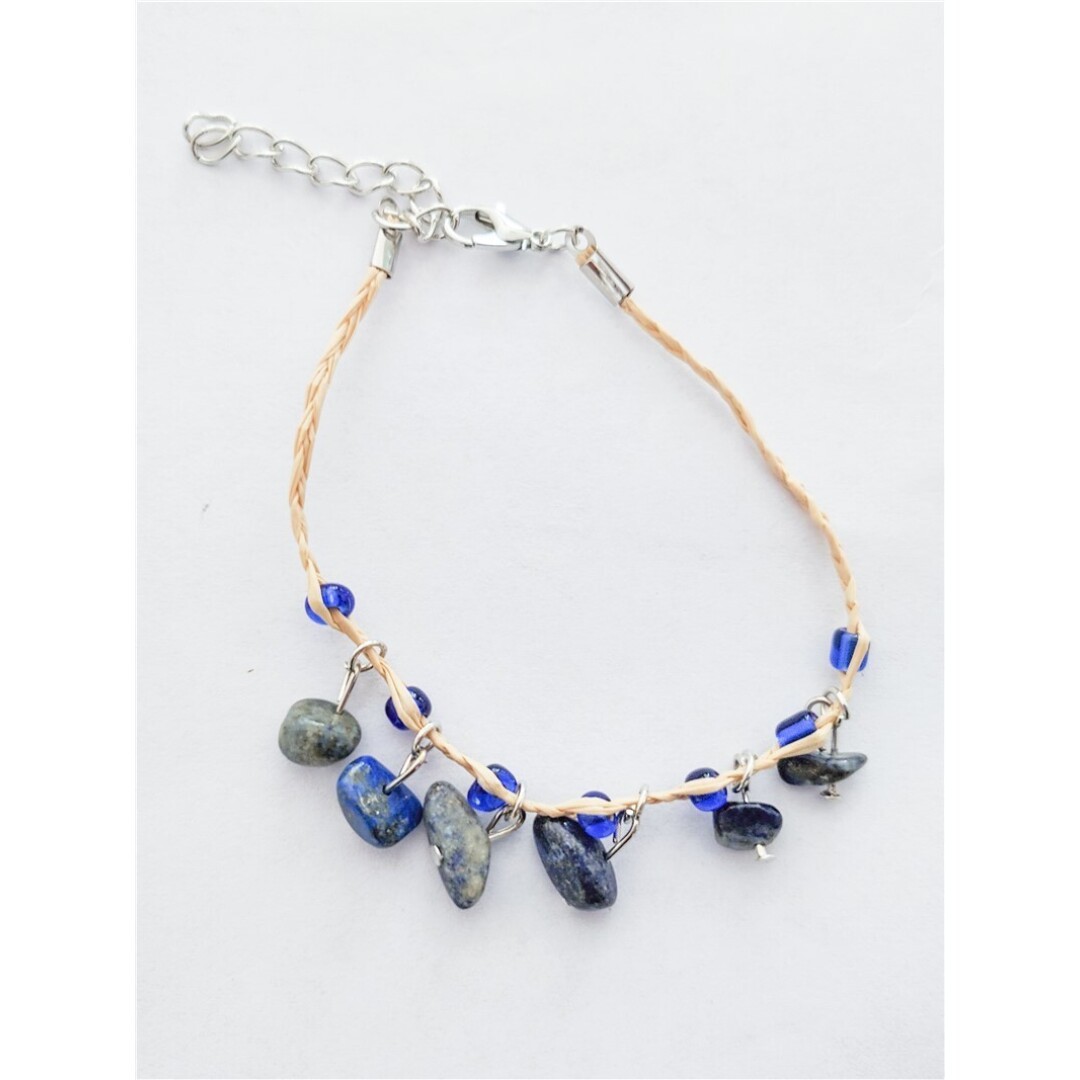 Pulseira Ráfia Pedra Lapiz Lazuli 20Cm