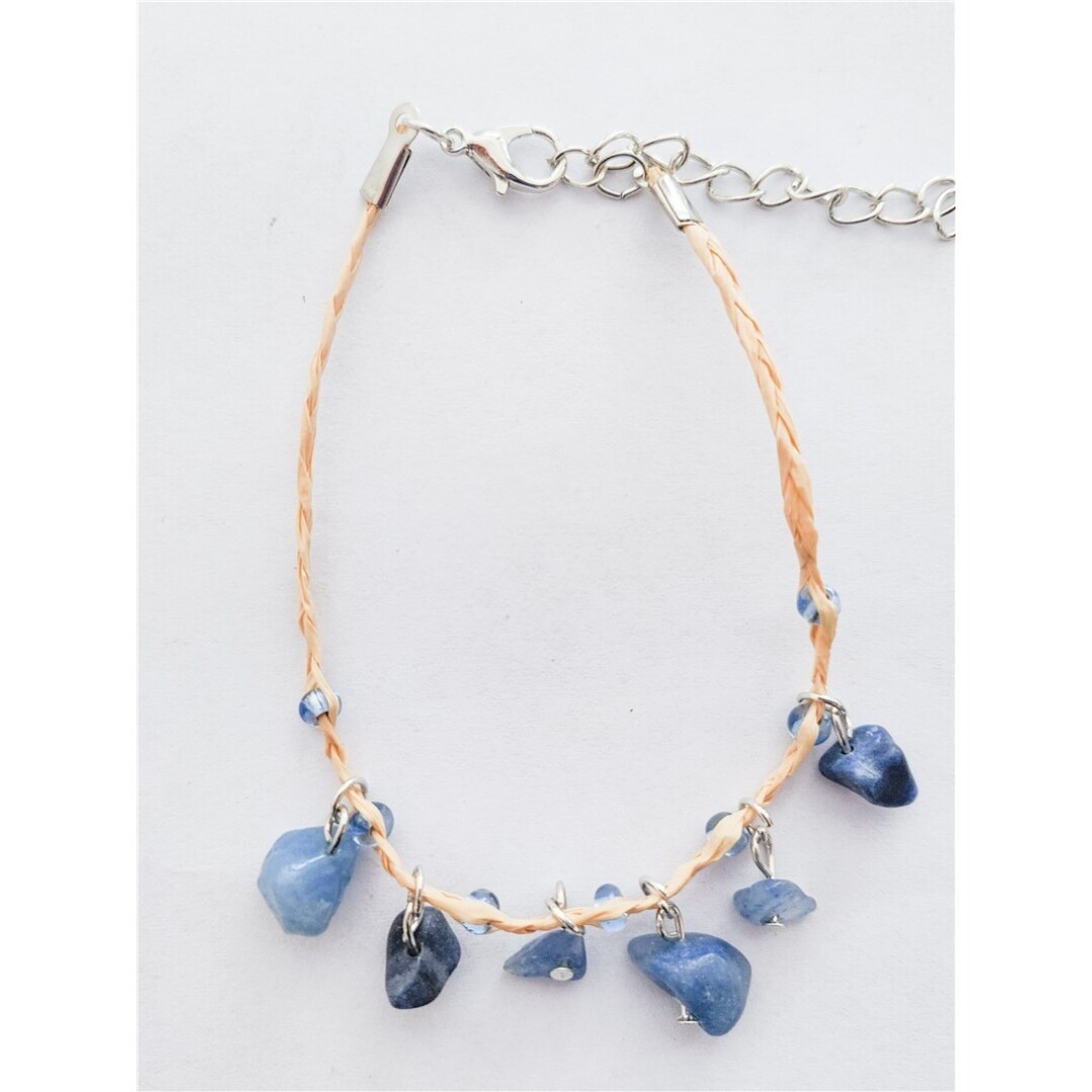 Pulseira Ráfia Pedra Quartzo Azul 20Cm